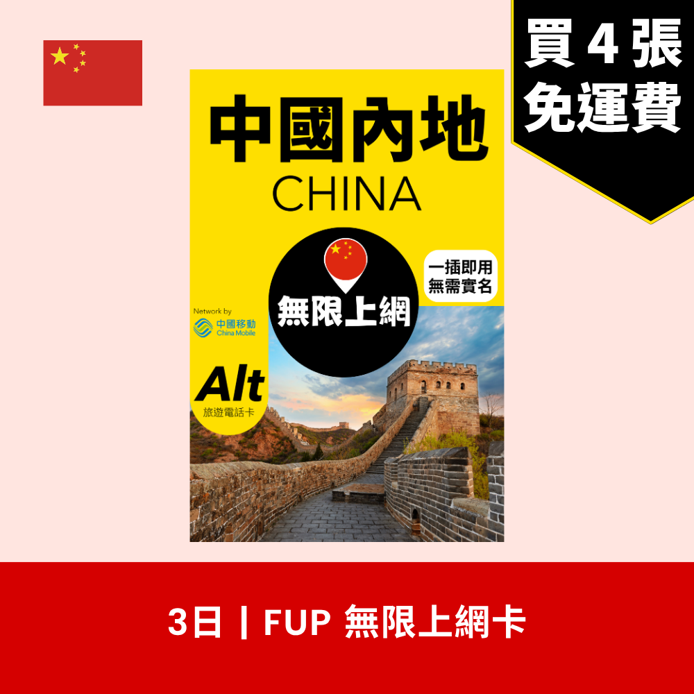 Alt 中國大陸 (內地)3日 FUP 無限數據電話卡