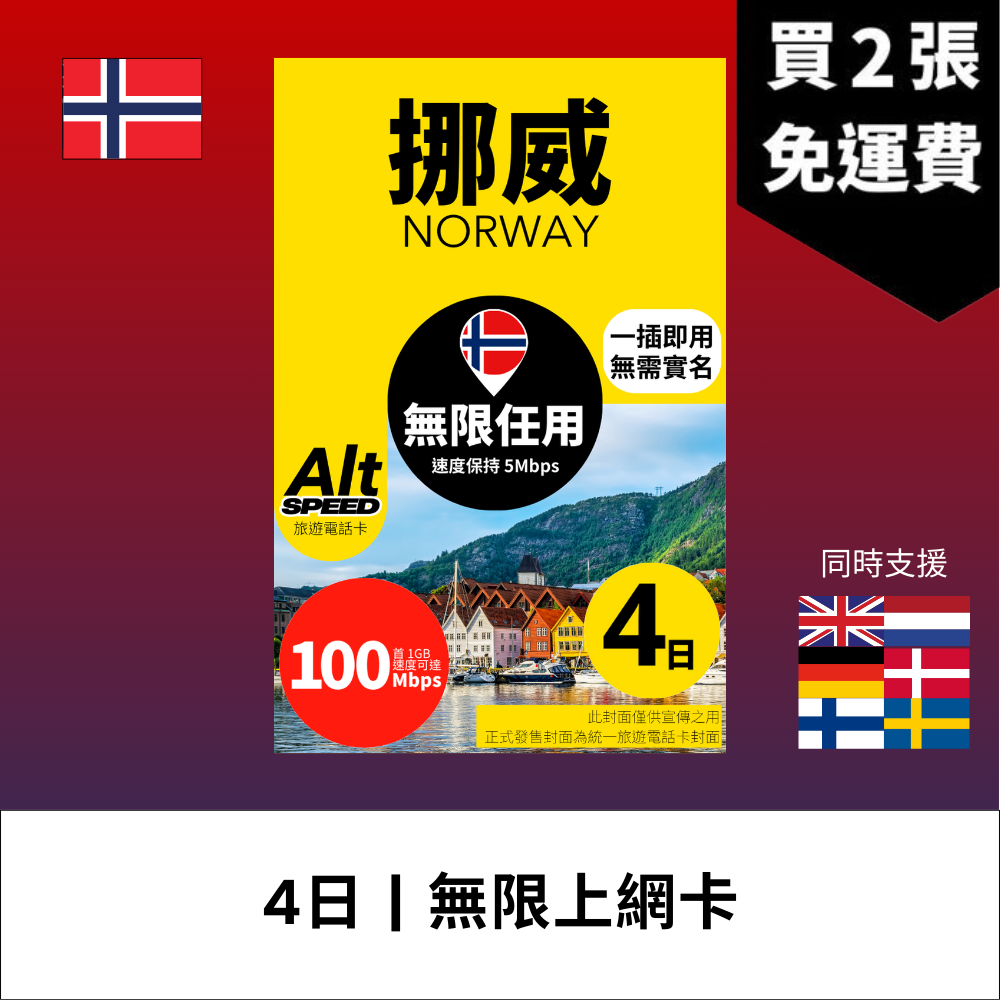 Alt Speed 挪威 4-7天 無限上網電話卡