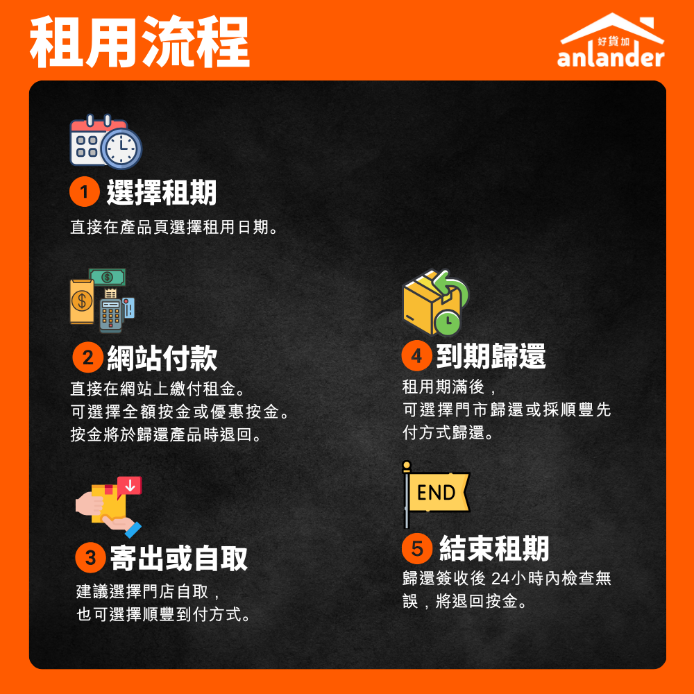 於租借期間,只要每日喺 Instagram 上載一個 Post 或 Reels,展示產品實際使用情況並Tag 及設為合作夥伴(Collaborator)我們 @anlander_store,即可獲得每日 HK$10 折扣回贈