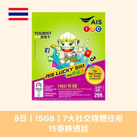 - 8天 / 15GB / 7大社交媒體額外10GB / 15泰銖通話👉前往選購