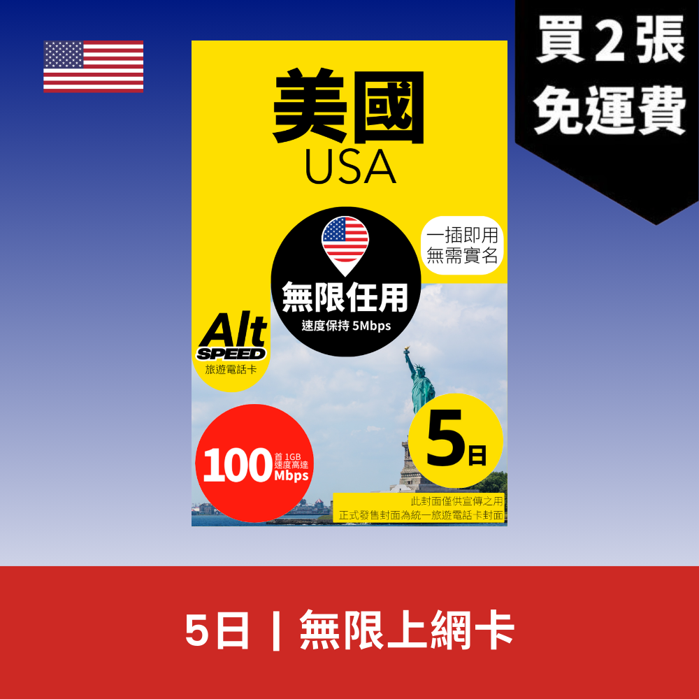 Alt Speed 美國 5天 無限上網電話卡